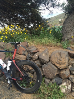 Runter vom Mirador ging es in Richtung Orzola und von dort mit Rückenwind zurück zur Tanke, danach rechts hoch...und nochmal Tabajesco...oben aber nicht rechts, sondern in Richtung ganz hoch nach Teguise. Entgegen der Ironman Strecke konnte ich schön viele Radgruppen und Einzelfahrer überholen, hier mal ein Lob an mein Rad...so langsam fühle ich mich richtig wohl auf ihm oder besser ihr ??