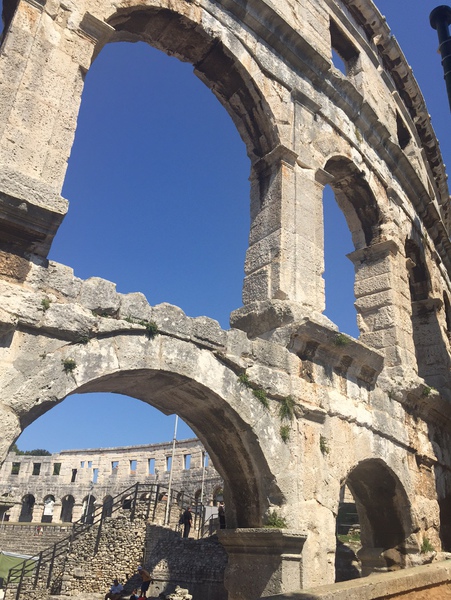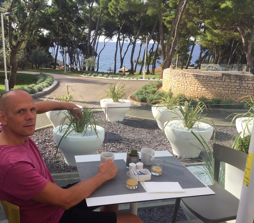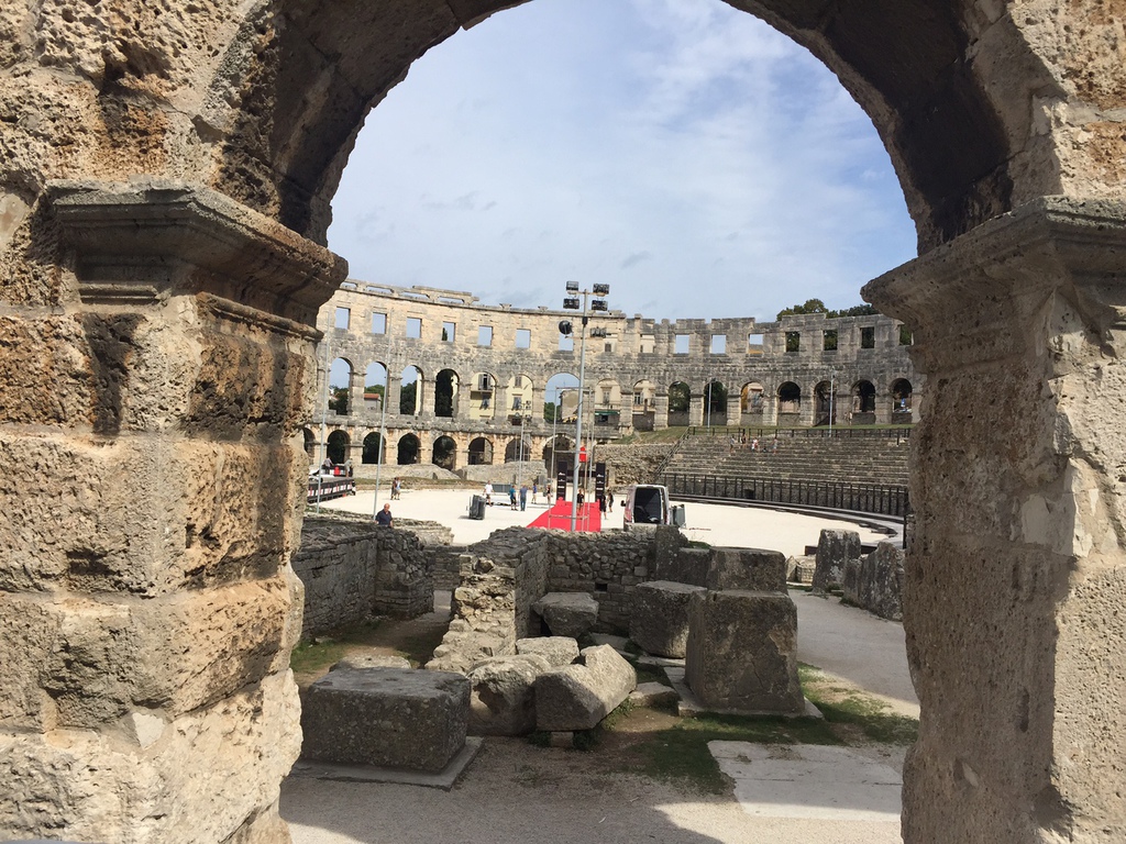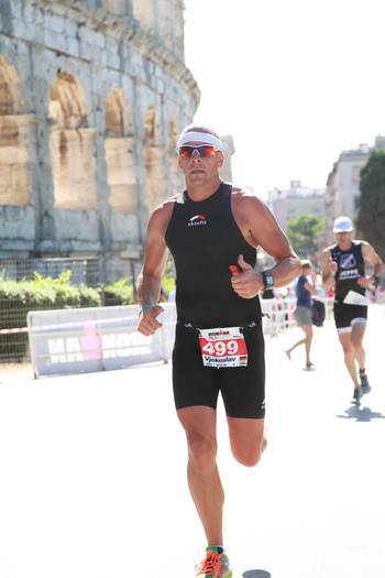 Freitagmittag ging es los...Heiner begleitete mich auf meiner Reise nach Pula...nach etwas stockendem Verkehr um München rum ging es relativ flüssig bis nach Pula...um halb neun waren wir dann dort angekommen. Etwas hektisch war dann das Einchecken ins Hotel...Auto parken und Klamotten mit samt Rad aufs Zimmer bringen...wir haben genau 15 Minuten gehabt ehe das Buffet geschlossen wurde ! Also hieß es ranhalten :) am nächsten morgen machten wir uns gleich in der Frühe zu einem lockeren Lauf auf. Meinen Lauf spickte ich mit kurzen kleinen Intervallen und Sprints...nsch circa sechs Kilometern war aber auch schon Schluss, nach dem ausgiebigen Frühstück ging es mit dem Bus nach Pula um die Startunterlagen zu holen. Was ich noch sagen muss, das Hotel war sehr schön, und bis auf das letzte Zimmer mit Triathleten ausgebucht, das kam durch die sehr zentrale Lage zum Schwimmstart und T1. In Pula klappte alles prima und die Startunterlagen waren schnell geholt, etwas Sightseeing und Mittagsessen gab es auch.